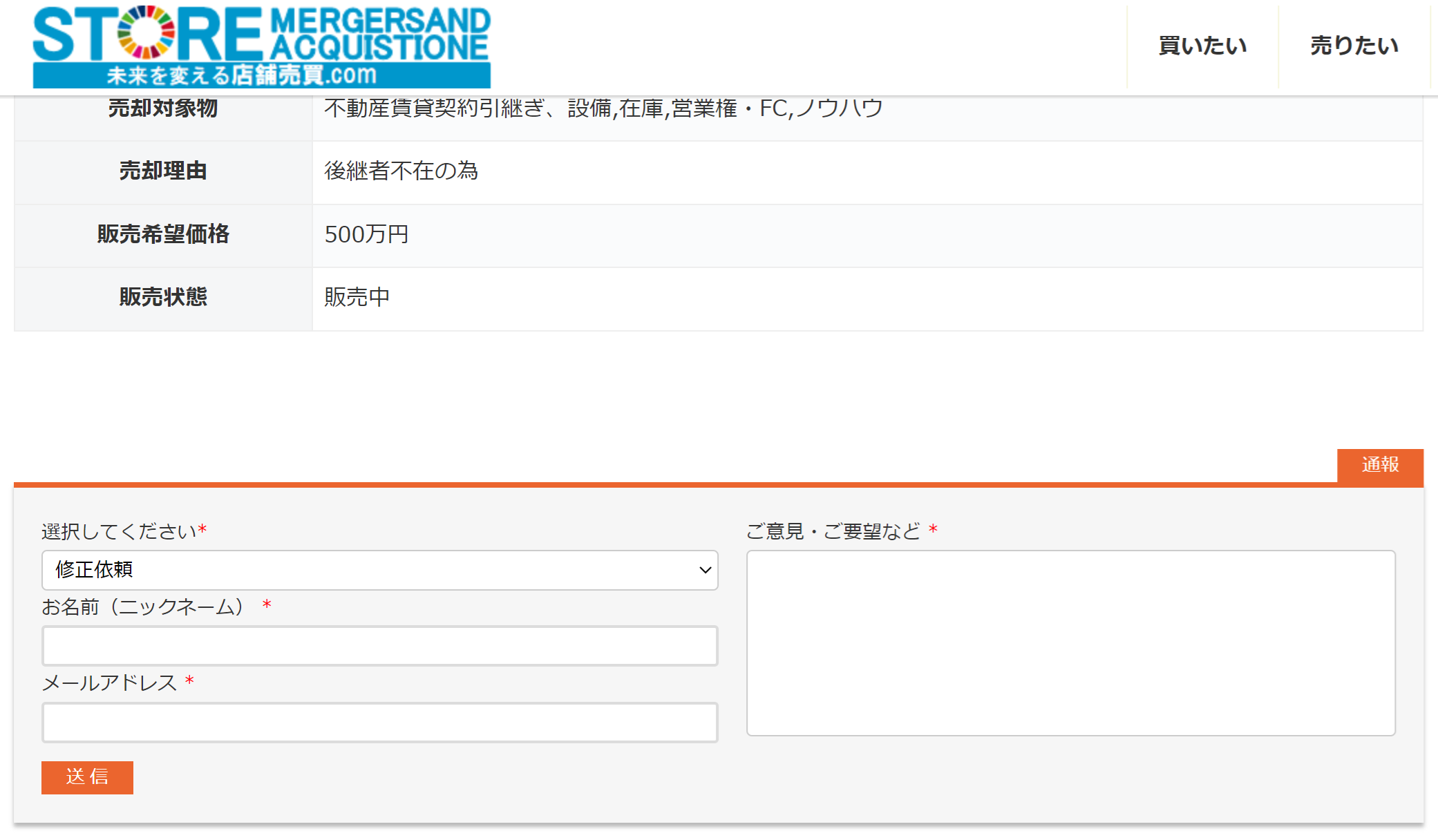各、販売ページの最下部の右側に「通報ボタン」が設置されています。ここから送信すれば、送信ページの情報に対してのご意見や削除依頼などが販売者やサイト運営者に届きます。